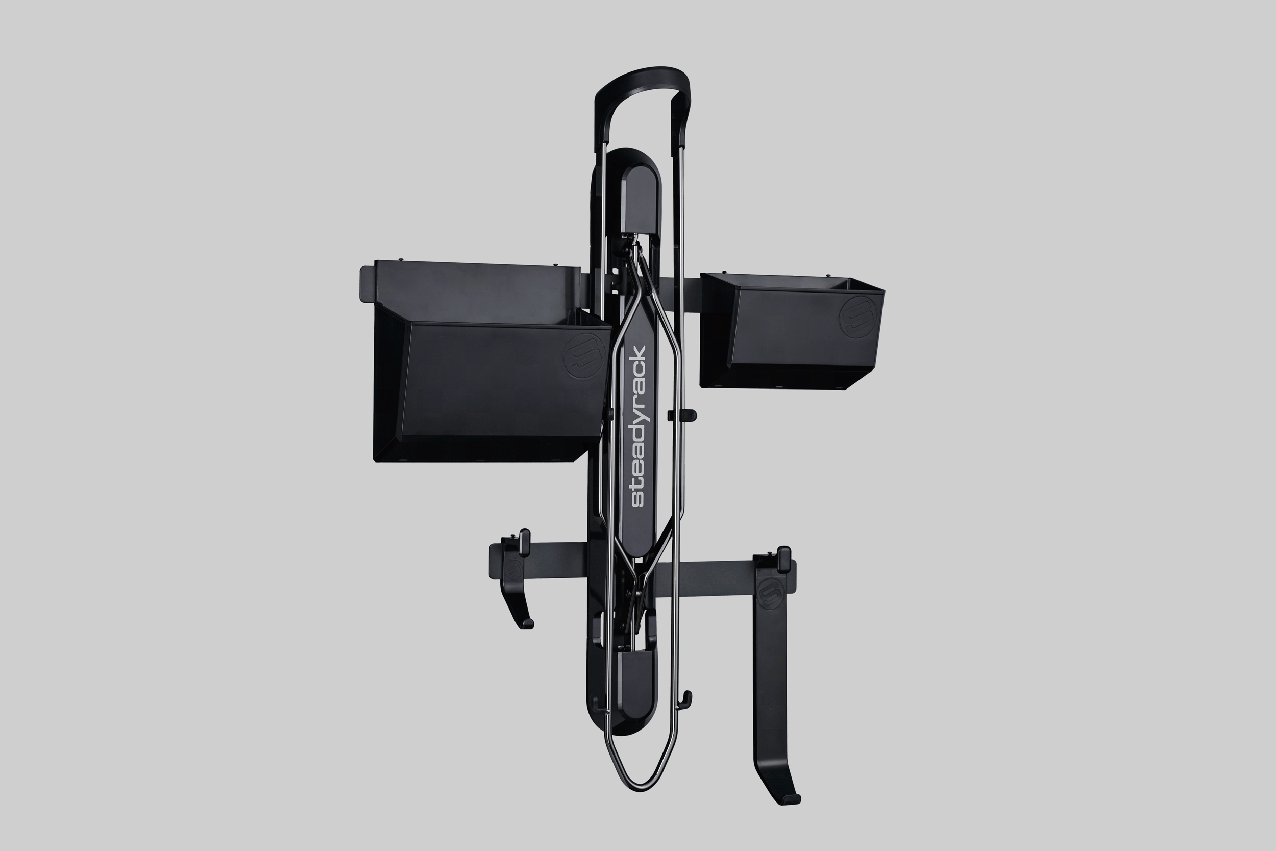 The Steadyrack Team have spent the last eighteen months perfecting our new product to ensure it was flawless. It was trial and error: concepts were created, prototypes tested, designs refined, and more concepts were created, and more prototypes tested - you get the idea. With a sleek combination of hooks, bins, and adjustable straps, GearMate lets you arrange your accessories your way. Fully customisable with over 200 arrangements, it adapts to suit your setup and style. Designed to install seamlessly behind your Steadyrack, its sturdy spine supports brackets to hold all your essentials.